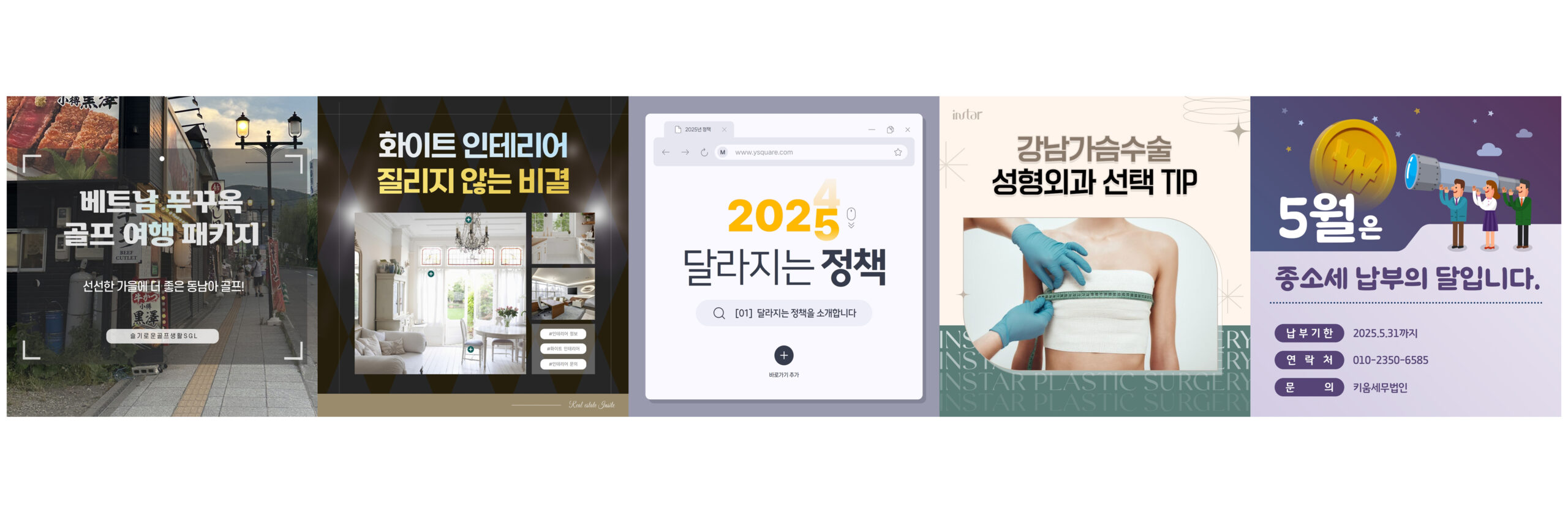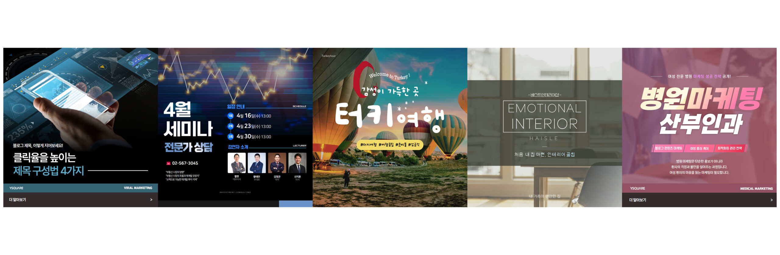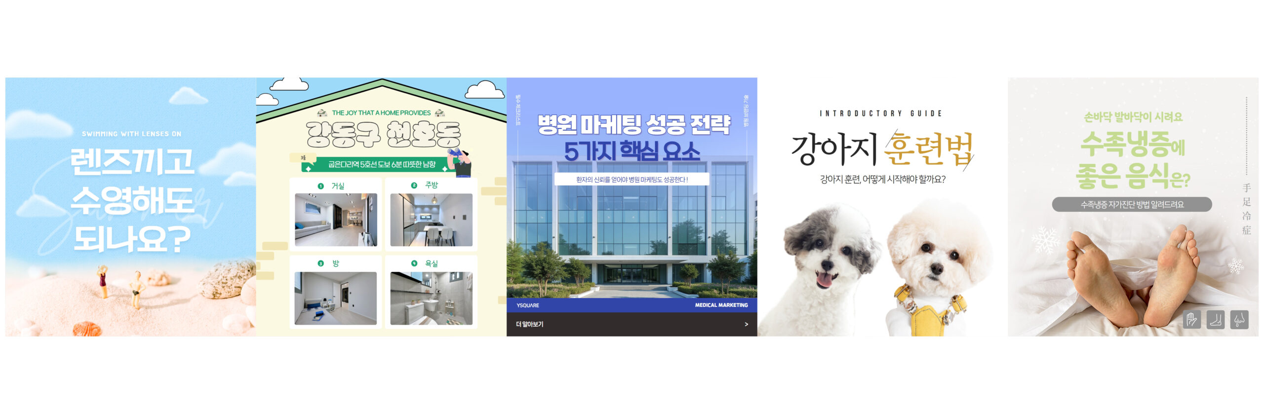 검색한 사람의 궁금증을 정확히 해소해 주는 ‘진짜 정보’를, 광고처럼 보이지 않게 꾸준히 발행하는 것입니다. 와이스퀘어마케팅에서는 이를 위해 상업성이 드러나는 문구를 지양하고, 단순한 브랜드 노출을 넘어 브랜드의 메시지와 스토리를 담아 신뢰를 주는 콘텐츠를 제작해 드리고 있습니다.