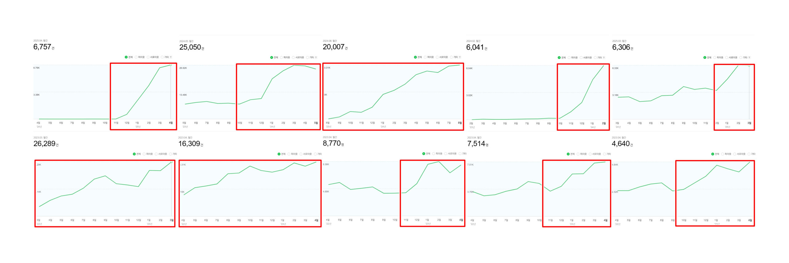 방문자수 집계, 유입 경로 분석, 상위노출 콘텐츠 패턴, 노출 키워드 변화 추이, 시간대별 반응률 등을 꾸준히 모니터링하며 콘텐츠 방향성과 노출 전략을 철저한 수치 기반으로 설계합니다.